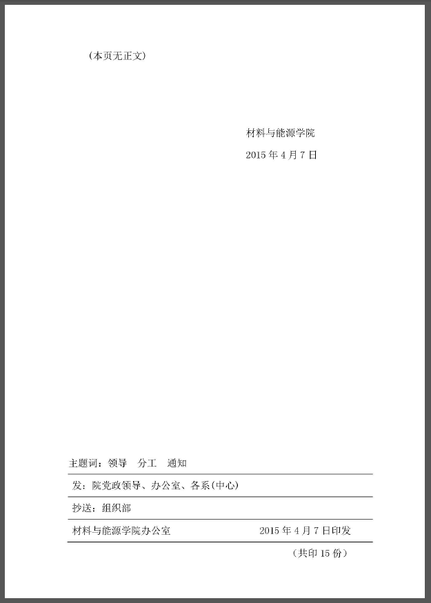 院字2015年1号(关于材料与能源学院领导班子分工及联系单位的决定)