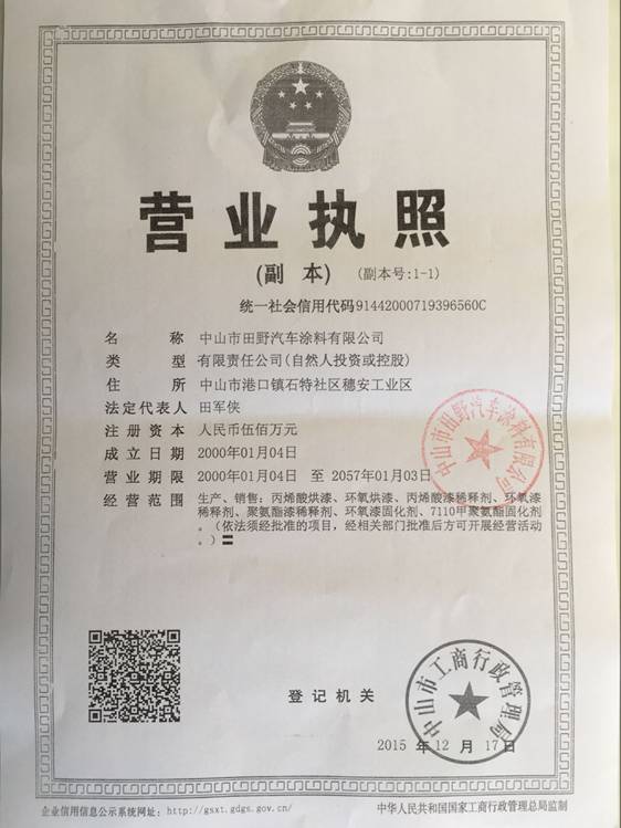 中山市田野汽车涂料有限公司是一家生产多种用途油漆的高新技术企业,主要生产(3H)品牌的高档汽车漆、五金漆、高级塑料漆、玻璃装饰漆、高尔夫球具专用漆、数码产品专用漆、高级墙面漆、电镀保护漆、光固化漆、特殊底材漆、底漆等系列产品。