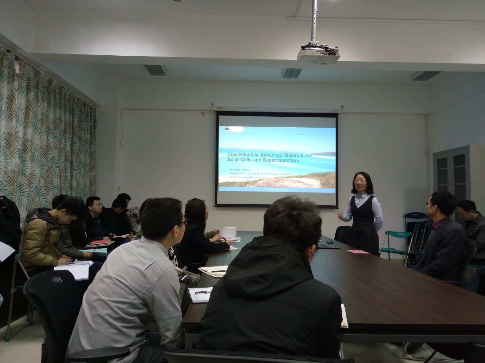 12月19日上午,昆士兰科技大学王红霞副教授应材料与能源学院邀请,在工学三号馆221室作了题为《钙钛矿太阳能电池和电容器的最新研究进展》的学术讲座,材能学院相关专业的老师和研究生参加了本次讲座。